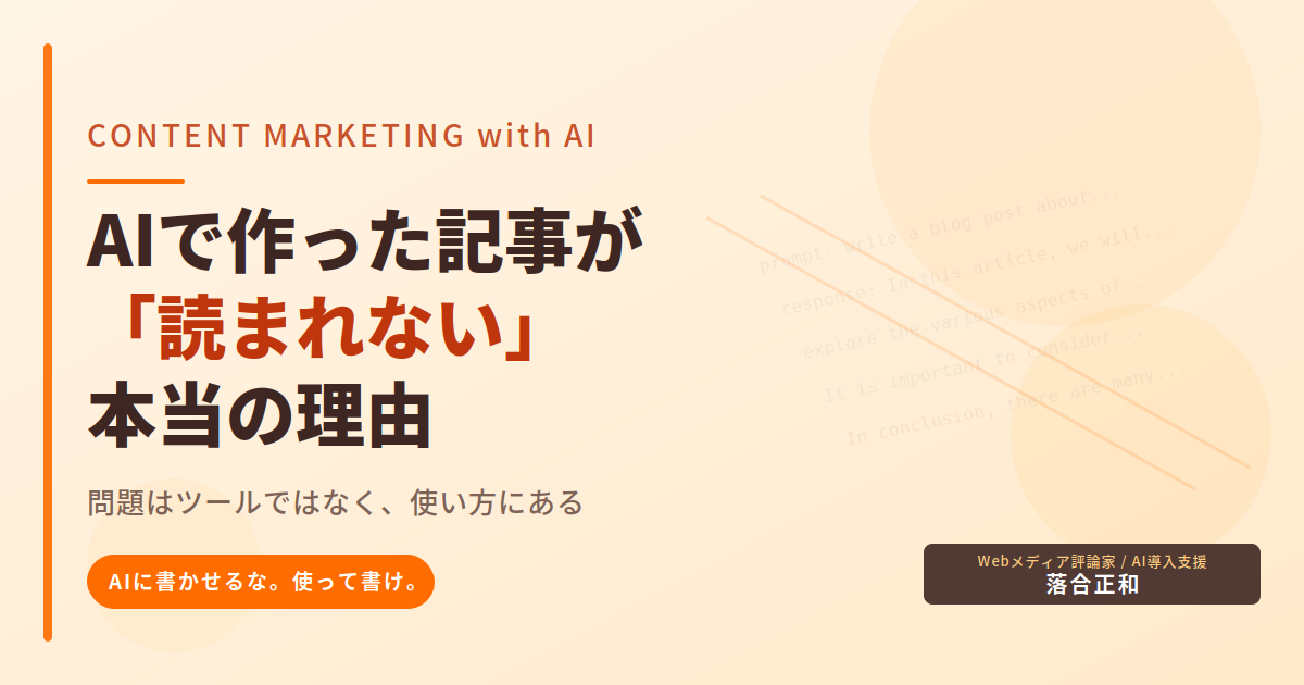 この一線を守れるかどうかが、これからのコンテンツマーケティングの成否を分ける。道具は進化した。問われているのは、道具を握る側の覚悟だ。