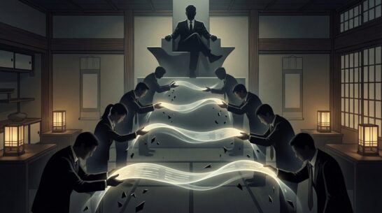 これが、オフラインのエコーチェンバーがオンラインのそれよりも深刻である構造的理由である。不可視であり、自覚困難であり、修正メカニズムを欠いている。そして、忖度という文化的装置によってさらに増幅される。